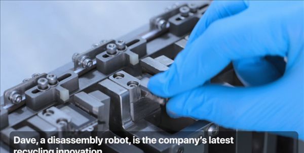 据苹果介绍,机器人 Dave 是苹果公司在产品回收领域研发出来的最新创新产品,它能够拆解 iPhone 手机中的触感引擎[XL 科技说],更好的回收稀土磁体和钨等关键材料,同时它还能在工作流程结束后继续回收钢材料。