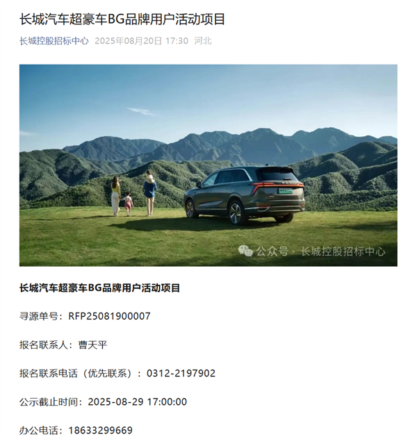长城汽车超豪华BG品牌要来了 用户活动项目已公开招标汽车