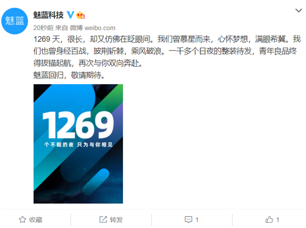 2021年9月10日,时隔1269天,魅蓝官方微博正式宣布回归,魅蓝终于重新回到大众眼前。