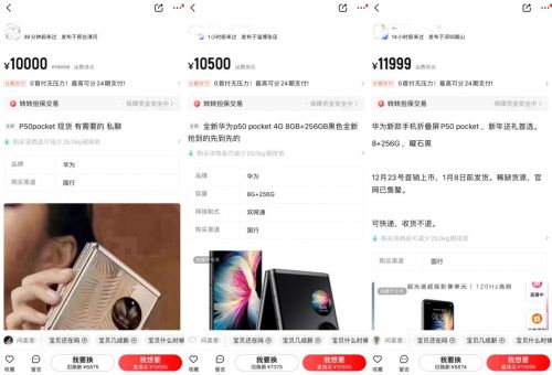 【TechWeb】12月24日消息,昨天,华为P50 Pocket折叠屏手机正式发布,8+256GB版售价为8988元,12+512GB艺术定制版售价为10988元。值得注意的是,发布会一结束,转转平台的“自由市场”中就已陆续有人发布预售信息。