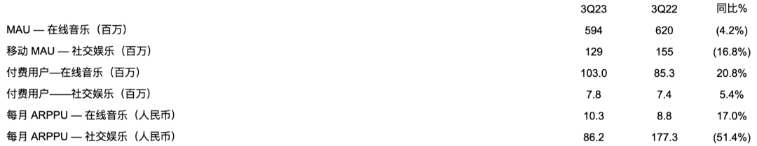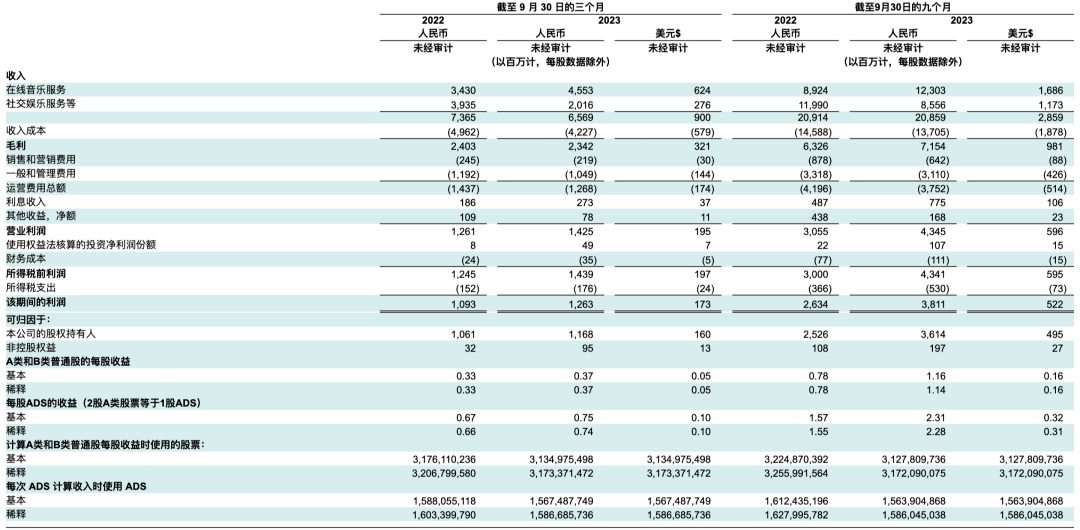 腾讯音乐2023年Q3财报