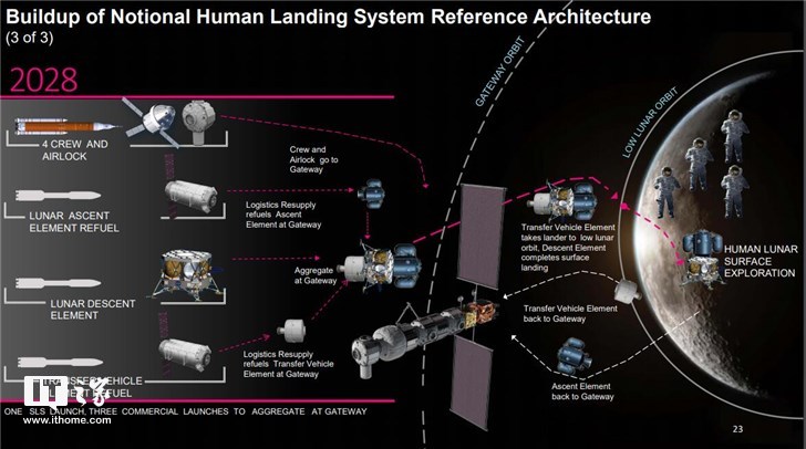 第三阶段,NASA将在2028年实现载人登月,这一期间,NASA还将会向月球发射数个探测器。