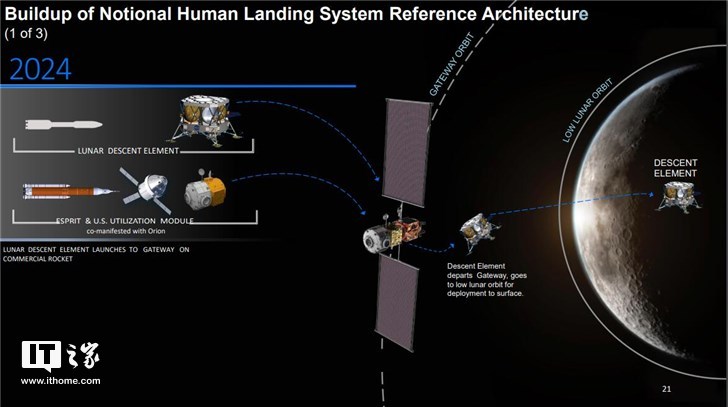 NASA这一计划将分为三个阶段,第一阶段,NASA将在2024年月球轨道上建立“门户”空间站,这一空间站将作为登月的中转站,这样能有效的减少从地球直接发射的难度。