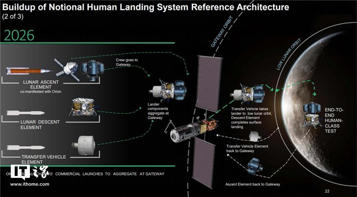 第二阶段,NASA将在2026年完成空间站建设,同时进行一次模拟着陆与返航测试。