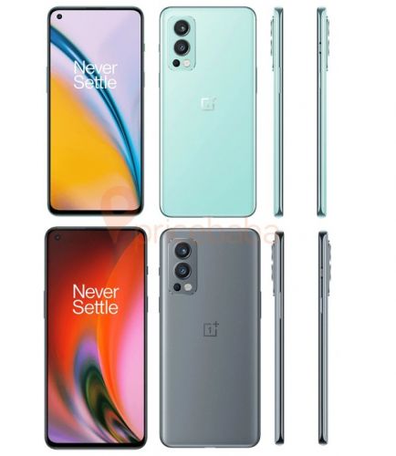 据外媒最新发布的渲染图显示,与此前曝光的消息基本一致,全新的一加Nord 2整体将延续一加9的外观设计,正面采用一块6.43英寸的FHD+AMOLED屏幕,采用左上角单挖孔设计,支持90Hz刷新率,背部同样采用曲面设计,后置矩阵式三摄相机模组,不过闪光灯从中间挪到了底部。此外,该机同样搭载了屏下指纹传感器。