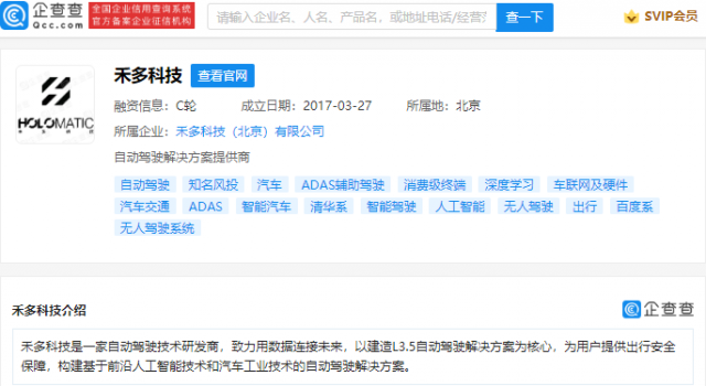 企查查信息显示,禾多科技是一家自动驾驶技术研发商,公司成立于2017年,法定代表人为倪凯,注册资本924.81万元人民币,经营范围包含:基础软件服务、应用软件服务;计算机系统服务;数据处理等。