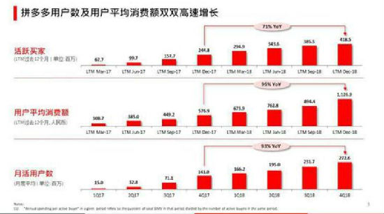 较2017年同期的1.41亿同比增长93%,较去年同期的17.55笔同比增长51%,2018年是拼多多强劲增长的一年。