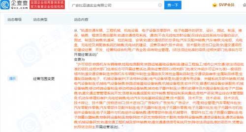 比亚迪关联公司经营范围新增物联网技术研发等快讯