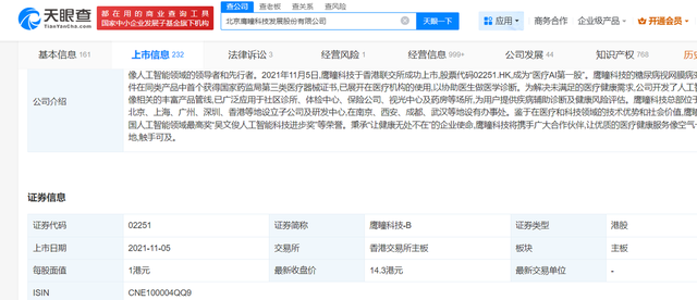 比如AI医疗影像方面,天眼查APP显示,现在鹰瞳科技可以靠着一部眼底AI相机,以及一张患者的眼底照片,然后交由云端视网膜影像AI算法去精准识别眼底上的每一处细微病变,从而实现对各种眼部疾病、高发心脑血管疾病,以及糖尿病等相关慢病风险的高效筛查……
