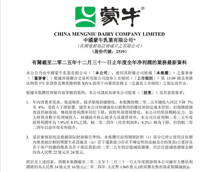 蒙牛最近比较“硬核”的动作就是发布了2025年业绩预告。