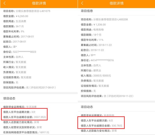 近日,商评君偶然发现,桔子理财“12月爱定存”匹配借款项目,个别借款人在平台已发生多次逾期。虽然桔子理财披露借款人已逾期,但桔子理财还是采取一个出借人匹配多个借款人的形式,实现分散匹配小额消费借款项目。