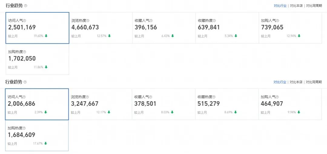 图片截自生意参谋,上为美容护肤/美体/精油类目下为彩妆/香水/美妆工具类目