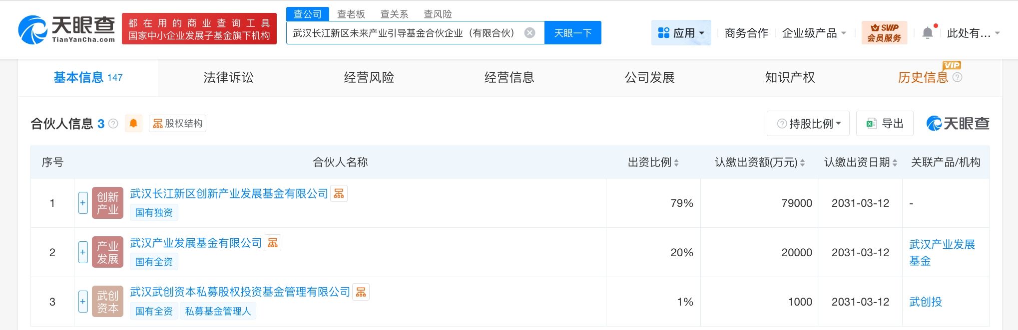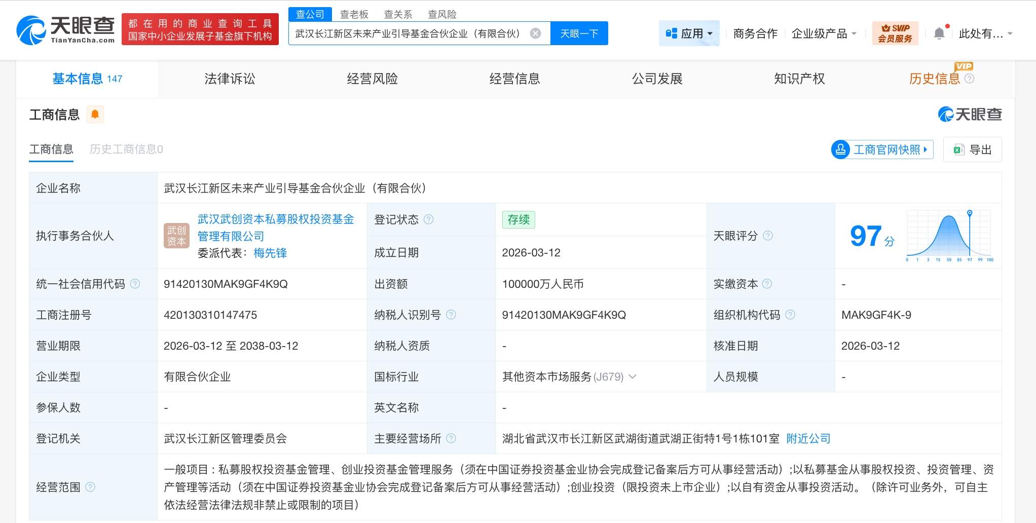 天眼查工商信息显示,近日,武汉长江新区未来产业引导基金合伙企业(有限合伙)成立,执行事务合伙人为武汉武创资本私募股权投资基金管理有限公司,出资额10亿人民币,经营范围为私募股权投资基金管理、创业投资基金管理服务,以私募基金从事股权投资、投资管理、资产管理等活动,创业投资,以自有资金从事投资活动。合伙人信息显示,该基金由武汉长江新区创新产业发展基金有限公司、武汉产业发展基金有限公司、武汉武创资本私募股权投资基金管理有限公司等共同出资。