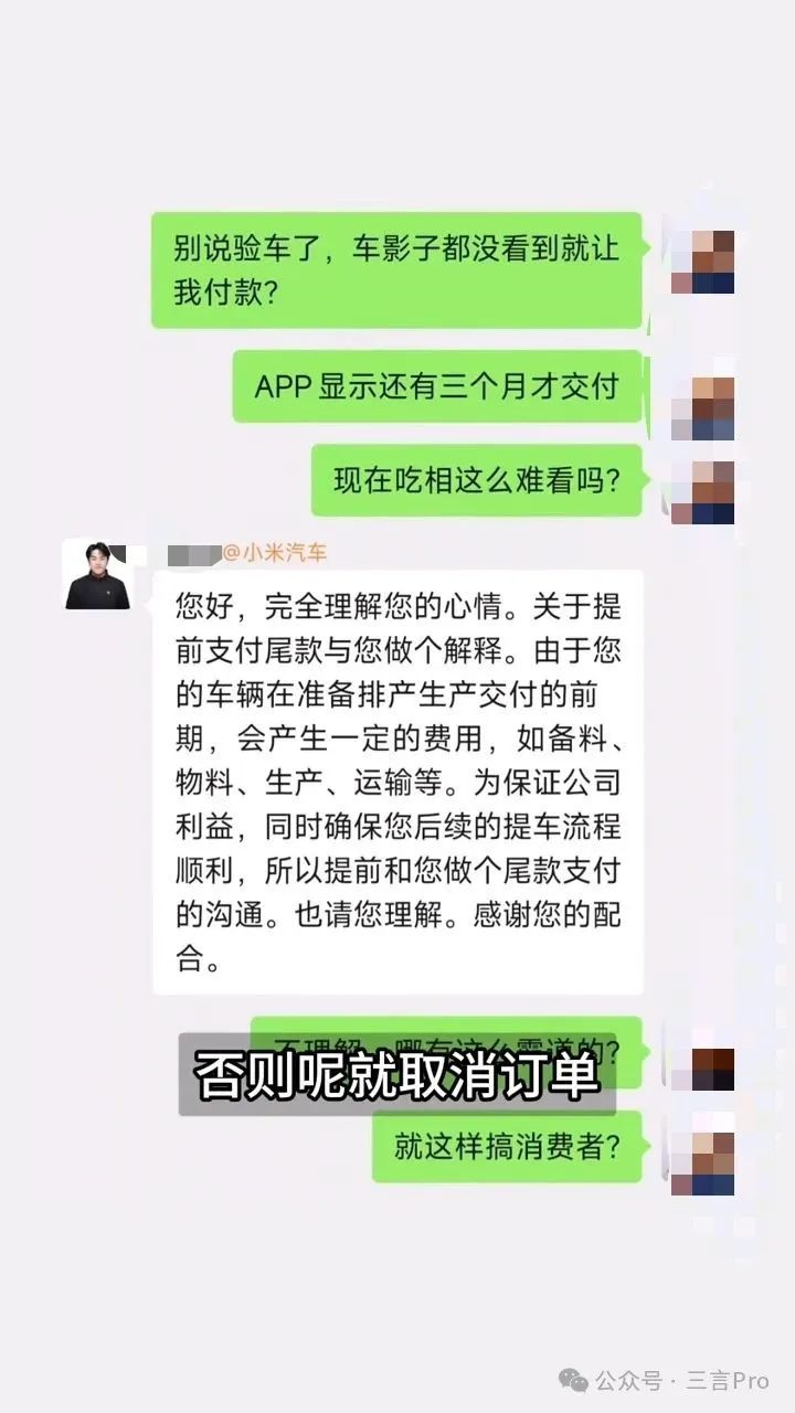 曝买小米汽车强签“霸王条款”:车未下线便遭催尾款,还有人吐槽需“先交钱后验车”汽车