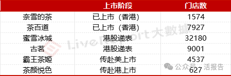 很多茶饮企业也已向港交所递交上市申请,包括蜜雪冰城、古茗、沪上阿姨。今年 5 月底,有媒体报道成称,新网红品牌霸王茶姬正在筹备赴美上市,募资规模预期介于 2 亿至 3 亿美元,将由花旗、摩根士丹利负责上市事宜。