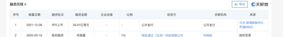 天眼查APP信息显示,2021年12月微博在港股上市,市值600亿,彼时股价在200块港元附近,而今天,即便是85港元的微博,也会有人思考会不会有风险。