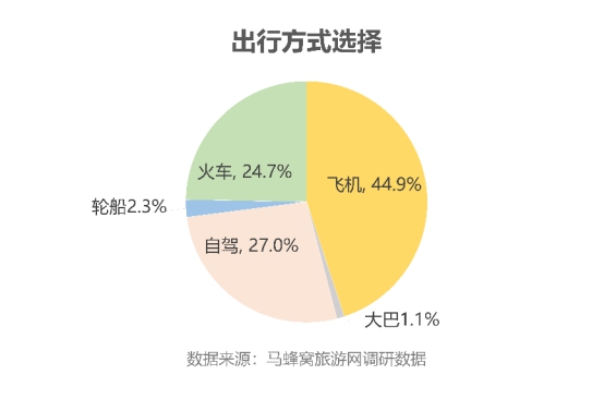 此外,选择乘坐飞机的白领占比达到45%,即使机票价格涨幅较大,白领们仍希望能更快地到达目的地,开始轻松愉悦假期,经济舱仍是白领们的主流选择。另有25%的人选择乘坐高铁或火车出行,仅有3%的受访者选择大巴和轮船。