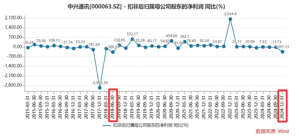 更令人吃惊的是中兴通讯2024年第四季度业绩表现。虽然该季度是业务淡季,但公司的扣非净利润却亏损7.19亿元,同比增速更是创下了2018年6月来新低。如此糟糕的业绩表现,也让一众投资者大跌眼镜,仔细分析公司近年来业务表现,发现中兴通讯正面临着诸多风险挑战。