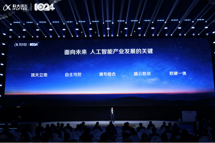 科大讯飞正在引领大模型规模化应用时代,面向未来,刘庆峰认为人工智能产业发展的关键是五个关键词:顶天立地、自主可控、通专结合、端云联动、软硬一体。刘庆峰说:“坚持这五个关键点,我们的人工智能就有大未来,就能真正的解放生产力、释放想象力,改变产业格局和竞争格局,带来科研范式的变化,带来各行各业的变化,最重要的是满足老百姓对美好生活的期望!这就是我们未来的发展方向。”