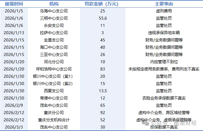 对于一家年保费超3000亿的公司来说,单张罚款金额不是大事。大事是:从2025年1月到现在,每个季度都没有停过,每个月都有新的地方挂网,年报将至,账单还在来的路上。