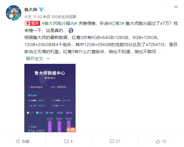 努比亚红魔3开启预约:鲁大师跑分破47万快报