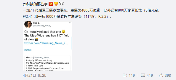 5月14日见?一加7 Pro后置三摄曝光:4800万像素+117度超广角快报
