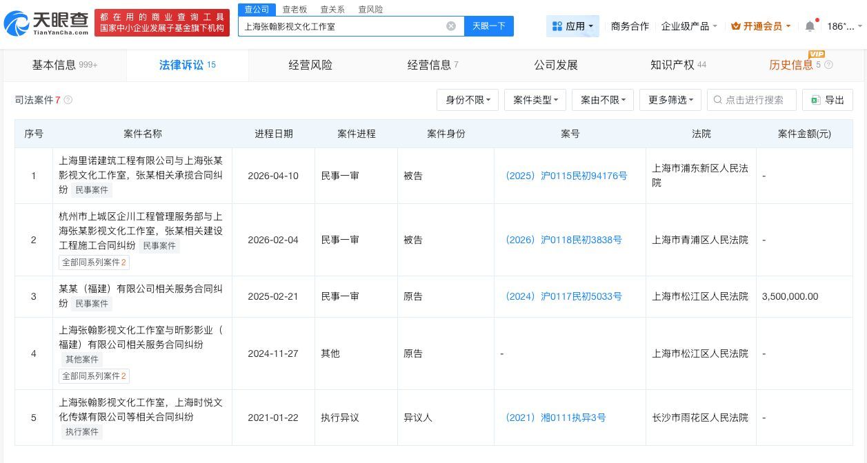 风险信息显示,张翰名下浙江东阳一画开天影业有限公司存在股权冻结信息,被执行人为张翰,冻结股权数额165万。此外,今年以来,上海张翰影视文化工作室因承揽合同纠纷被2次起诉。