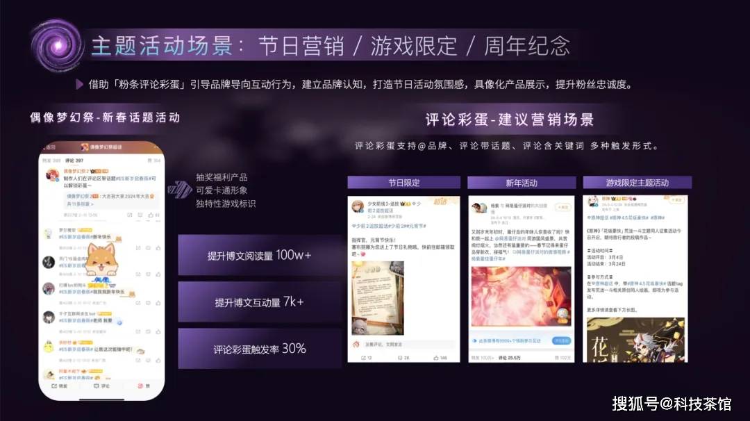 偶像梦幻祭新春活动,厂商通过“评论彩蛋”趣味化游戏展示,增加玩家互动乐趣,从而提升博文阅读量和活动传播效果,最终,博文阅读量提升超100万,评论彩蛋触发率高达30%以上;