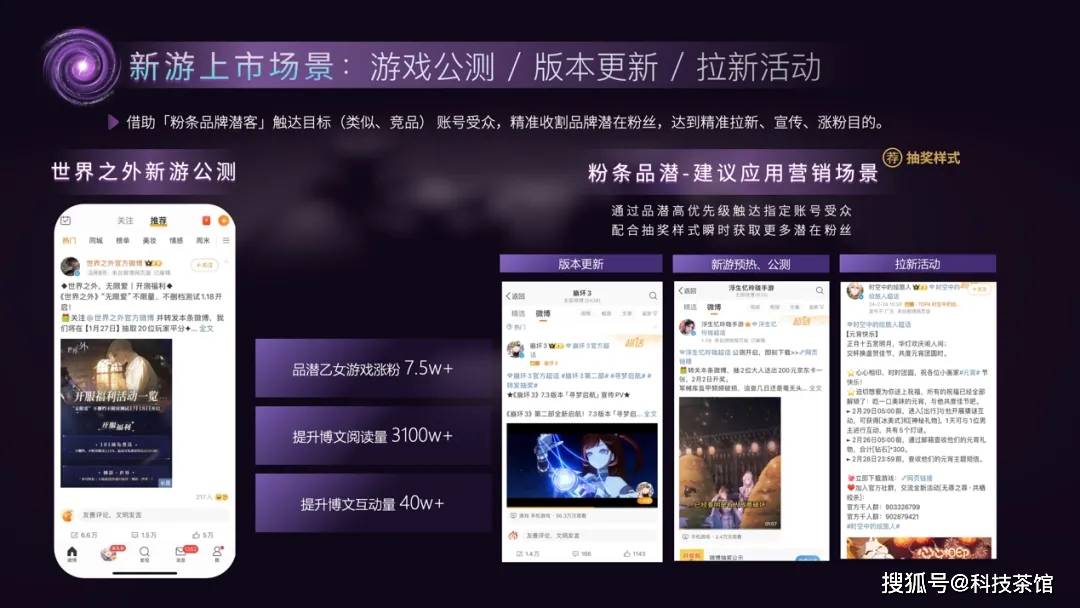 世界之外新游公测,厂商借助“品牌潜客触达”,让宣发优先触达指定人群,提高品牌曝光和认知度,同时配合抽奖样式吸引更多潜在粉丝的参与,最终,品牌官微涨粉超7.5万,互动量提升超40万;