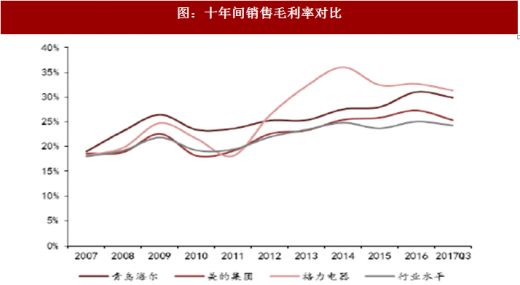 图:十年间销售毛利率对比