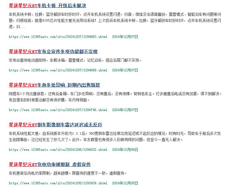 据车质网数据显示,部分车主反馈星纪元ET的车机存在卡顿现象,并且时常自动重启,不仅影响日常使用,还带有一定安全隐患。