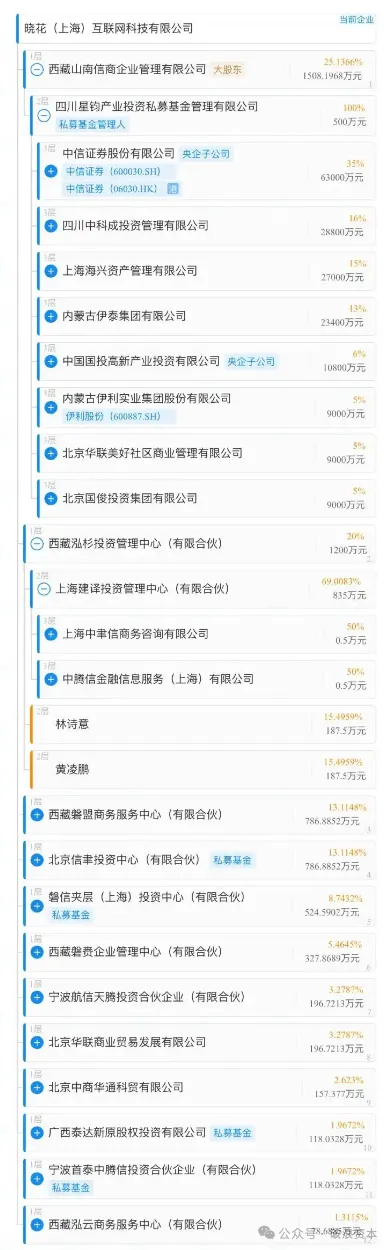 公开信息显示,晓花上海25.14%的股权由中信产业基金通过西藏山南信商持有,20%股权归中腾信关联的泓杉投资所有,而中腾信曾与P2P平台麻袋财富深度关联,本身就存在合规隐患。