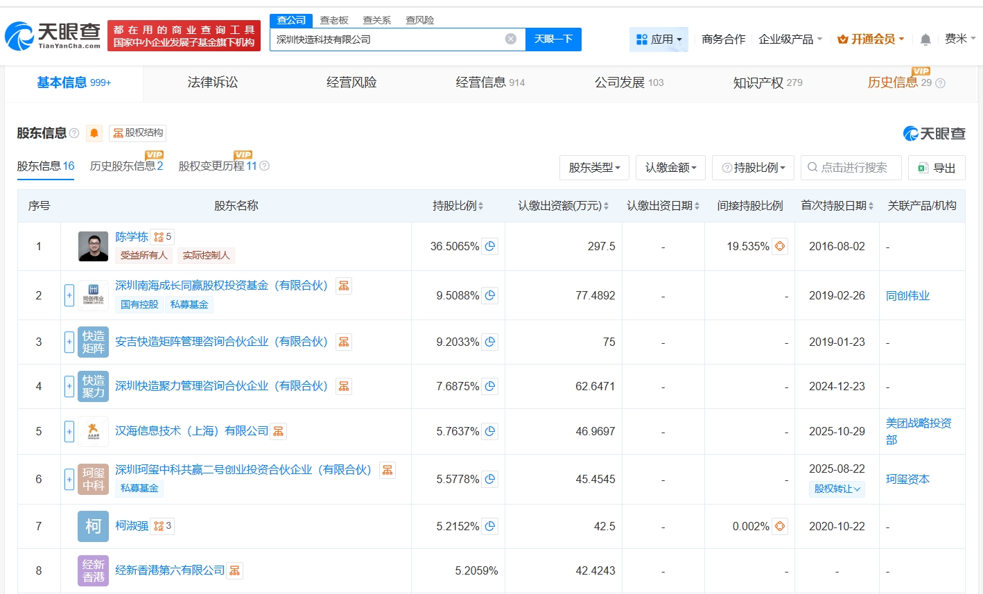 天眼查App显示,近日,Snapmaker关联公司深圳快造科技有限公司发生工商变更,新增美团旗下汉海信息技术(上海)有限公司、成都龙珠股权投资基金合伙企业(有限合伙)等为股东,同时注册资本由约704.5万人民币增至约814.9万人民币。