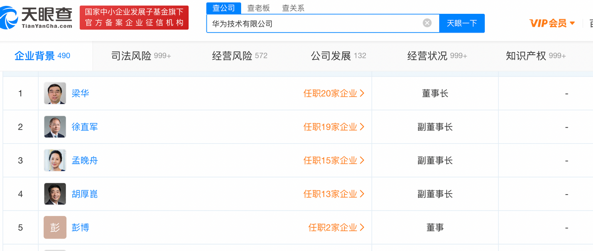 天眼查APP信息显示,胡厚崑于1990年加入华为,曾任公司中国市场部总裁、拉美地区部总裁、全球销售部总裁等职,现任华为技术有限公司副董事长,轮值董事长。