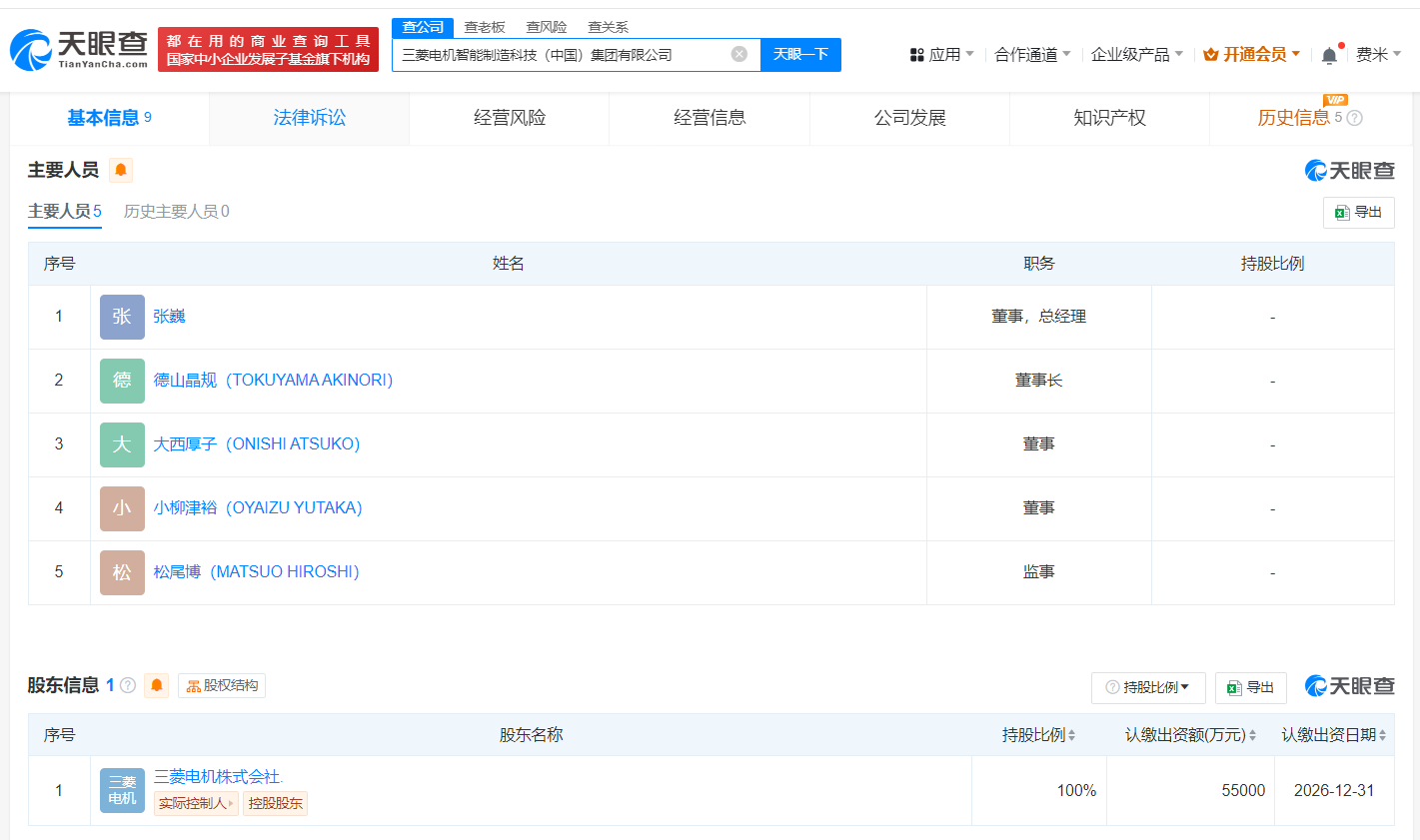 天眼查App显示,近日,三菱电机智能制造科技(中国)集团有限公司成立,法定代表人为张巍,注册资本5.5亿人民币,经营范围包括计算机软硬件及外围设备制造、工业控制计算机及系统制造、软件开发、普通机械设备安装服务、机床功能部件及附件制造、通用设备修理等,由三菱电机株式会社全资持股。