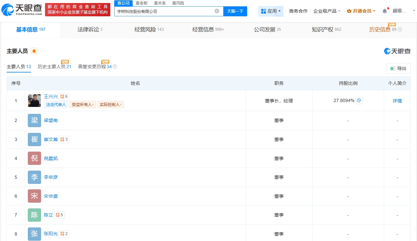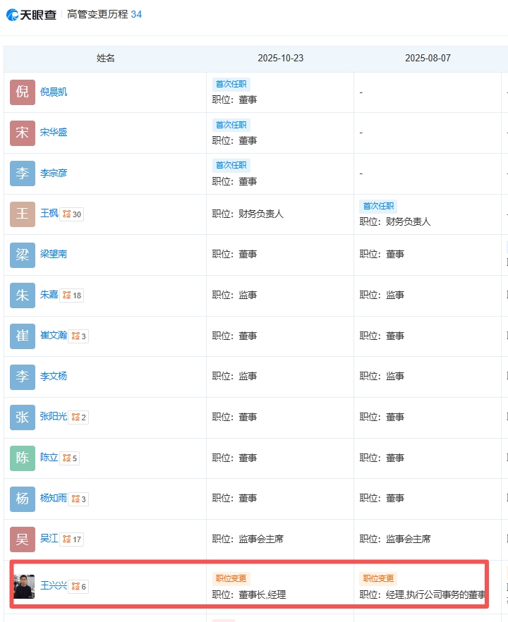 天眼查工商信息显示,10月23日,杭州宇树科技股份有限公司发生工商变更,企业名称变更为宇树科技股份有限公司,同时王兴兴由执行公司事务的董事变更为董事长。