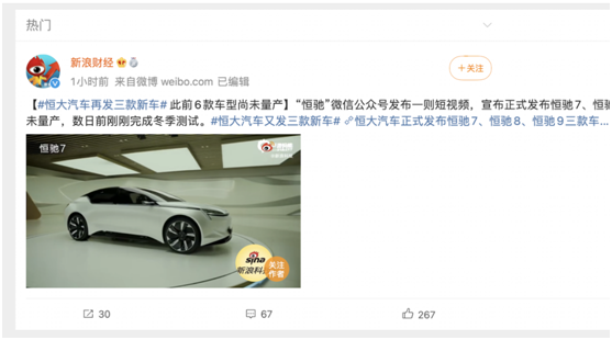 但在产业进度上,碧桂园确实领先恒大一步,恒大汽车的最新进度是恒驰汽车冬测正式启动。