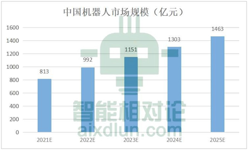与此同时,根据《2021-2025年中国机器人产业投资分析及前景预测报告》中显示:2019年,我国机器人市场规模达到588.7亿元,同比增长9.8%。预计2021年我国机器人市场规模将达到813亿元,未来五年年均复合增长率约为15.8%,足以看出中国机器人存在巨大市场潜力和发展空间。
