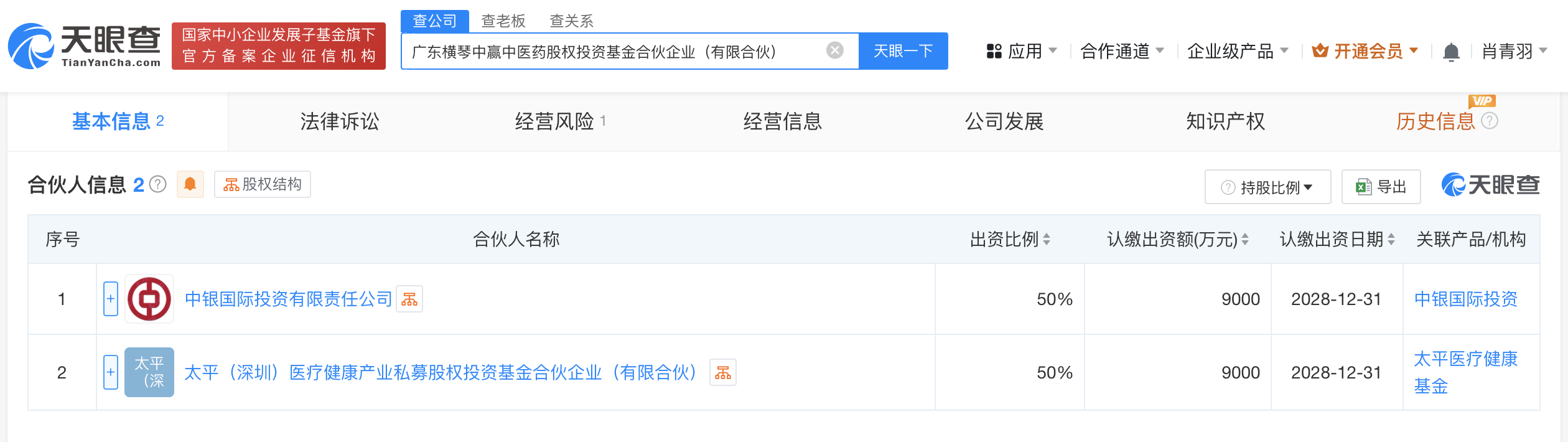 天眼查App显示,近日,广东横琴中赢中医药股权投资基金合伙企业(有限合伙)成立,执行事务合伙人为中银国际投资有限责任公司,出资额1.8亿人民币,经营范围为以私募基金从事股权投资、投资管理、资产管理等活动。合伙人信息显示,该基金由中银国际投资有限责任公司、太平(深圳)医疗健康产业私募股权投资基金合伙企业(有限合伙)共同出资。