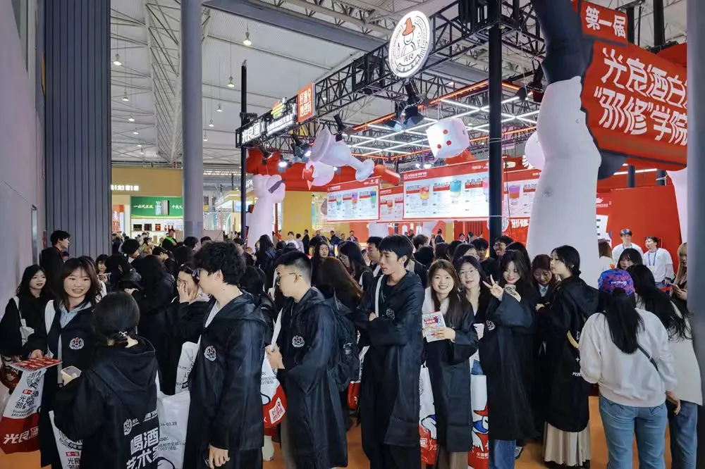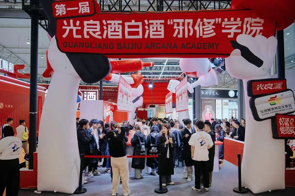 2026年3月,在第114届成都春季糖酒会上,光良酒联合主办方打造了一出“白酒邪修学院”大型营销秀,现场千名大学生穿魔法袍、玩“邪修调酒”,三天引爆大量社交话题。
