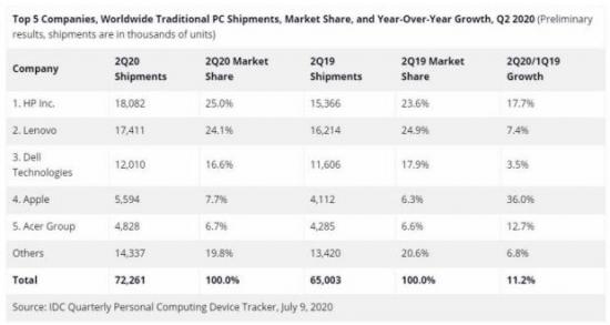 新业务挑战重重以外,联想的支柱业务也正在受到“追随者”的挑战。2020年第二季度时,连续七个季度摘得全球PC市场出货量第一的联想被老对手惠普超越。虽然在下一季度联想很快重登了王座,但这也从侧面证实了联想“PC”老大的地位并不是不可撼动的。
