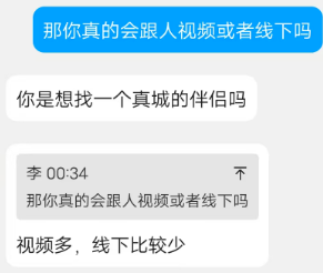此外,凤凰网财经《公司研究院》发现,有些主播直接会将微信号或者QQ号直接给用户,凤凰网财经《公司研究院》随机加了一名主播后询问对方是否会真的视频和线下,对方表示视频比较多,线下比较少,线下的话需要先送一两个礼物,然后打电话定位置即可。