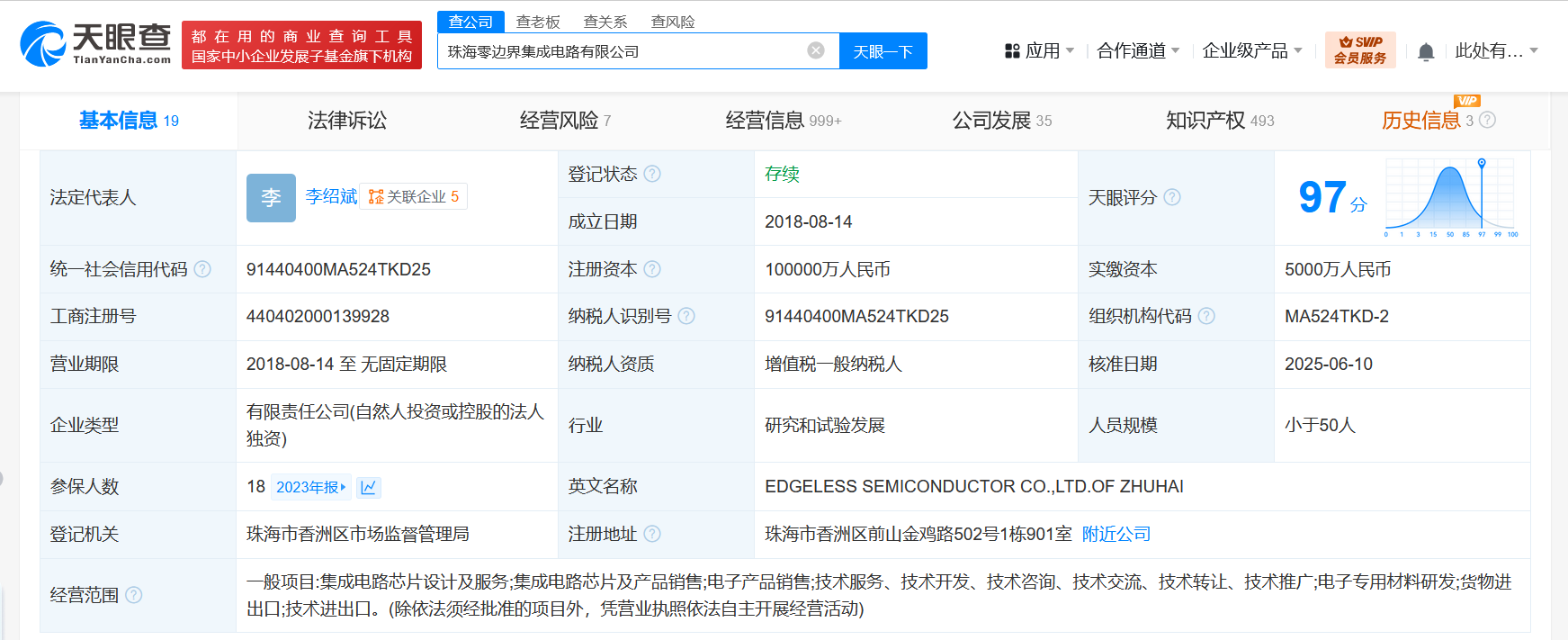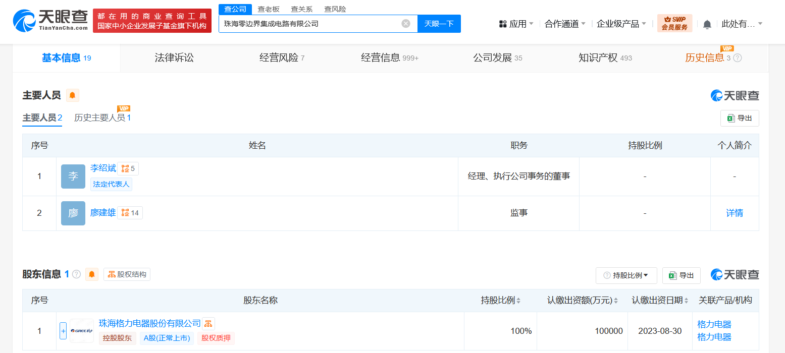 该公司成立于2018年8月,注册资本10亿人民币,经营范围含集成电路芯片设计及服务、集成电路芯片及产品销售、电子产品销售、电子专用材料研发、货物进出口、技术进出口等。股东信息显示,该公司由格力电器(000651)全资持股。