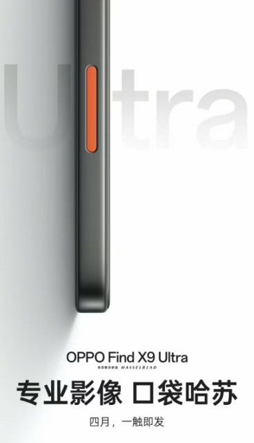 而OPPO Find X9 Ultra搭载的哈苏10倍光变天眼长焦镜头,全新的OPPO Find X9 Ultra将在4月21日亮相,据OPPO Find系列产品负责人卓世杰最新发布的信息透露。