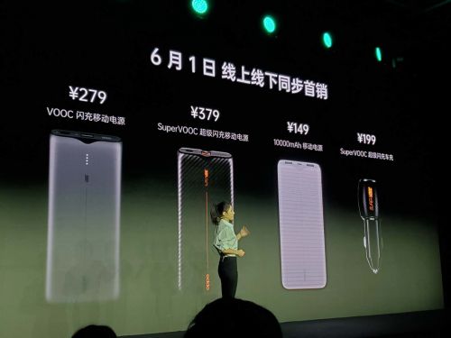 本次发布会上还发布了OPPO闪充家族——OPPO 10000mAh移动电源、VOOC闪充移动电源、SuperVOOC超级闪充移动电源和SuperVOOC超级闪充车充。OPPO 10000mAh移动电源支持双USB接口输出、12重安全防护以及多种快充协议;VOOC闪充移动电源搭载VOOC 3.0新一代闪充技术,支持20W双向闪充、VOOC全兼容、15重安全保护,金属3D弧度机身。