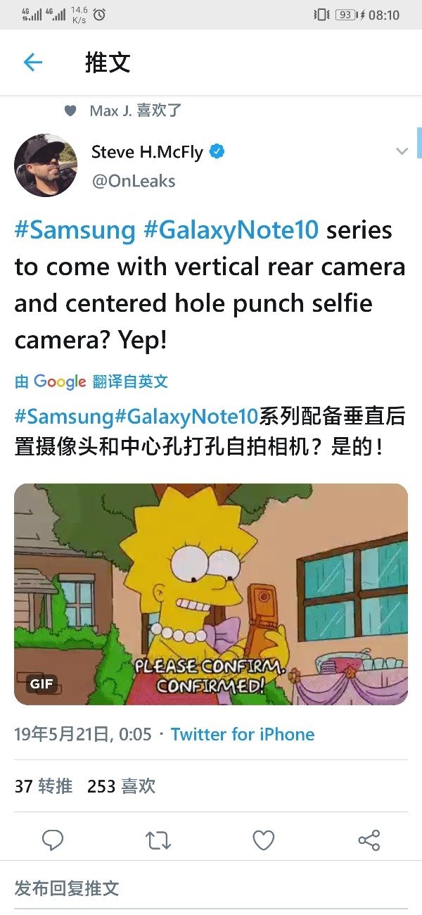 爆料人士现在曝光了三星Note10的一些外观设计和配置信息,三星Note10将采用后置竖直三摄,前置中间打孔相机的屏幕。在这一点上,三星Note10改变不少。