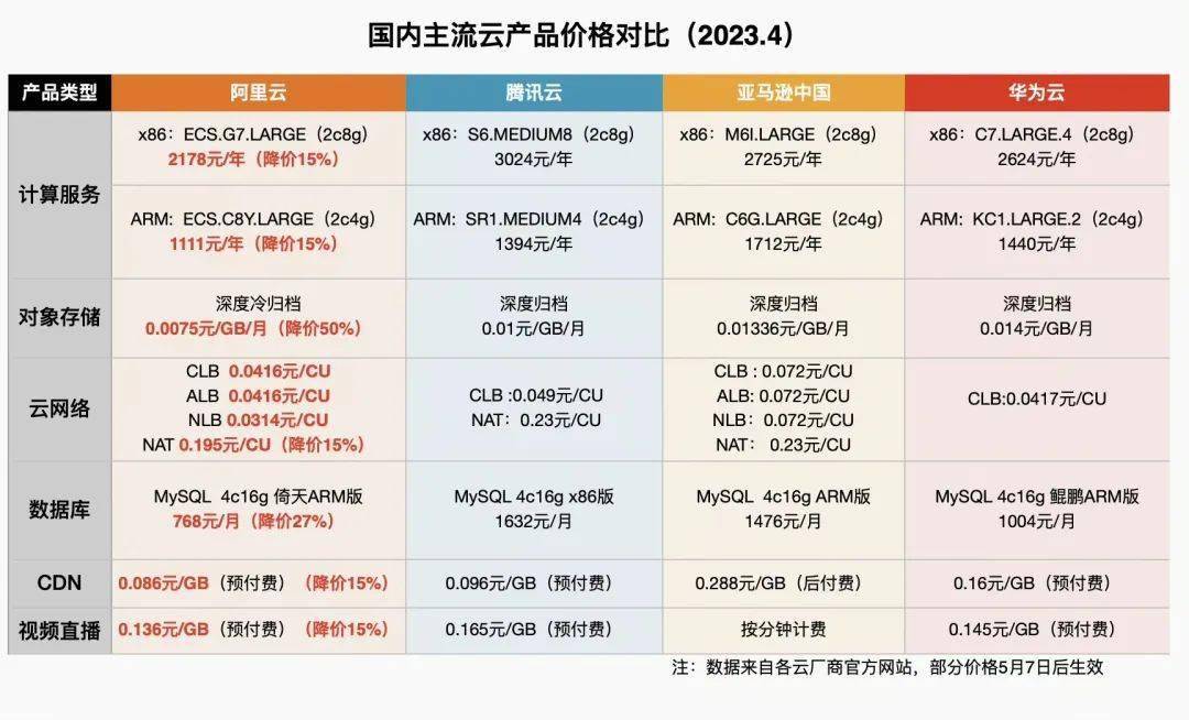 而打折的几个产品,价格基本都达到了主要几个竞争对手的 7 折。甚至有网友调侃道, 这轮降价过后其他厂商可以靠倒卖阿里云的产品赚差价了。