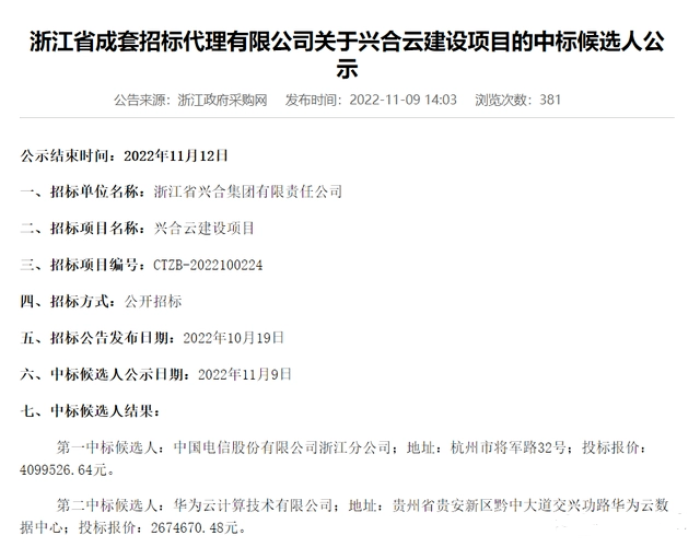 最典型的一个例子就是,在去年的一次云业务招标中,浙江电信以 400 万价格中标。但是亮点在于,华为出价 267 万,打了 6 折竟然还屈居第二。