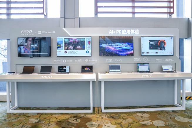 在峰会现场的展示区,AMD和微软携手众产业链合作伙伴,带来了丰富的应用演示和互动体验。在以 Windows 11 AI+ PC 全新操作系统自带AI功能、NPU赋能AI+ PC应用和AI+ PC创新应用为主题的三大展示区,搭载最新的AMD锐龙AI 300系列处理器,来自华硕、惠普、联想、微星以及极摩客、六联、易道的笔记本电脑和mini PC新品,不仅展现了全新的Windows 11 AI+ PC AI新特性,还带来了十多款基于AI+ PC的创新AI应用,供与会者现场感受和体验。