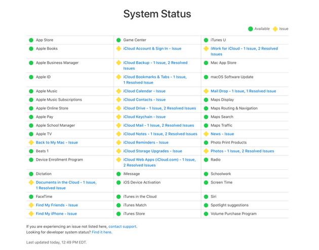 苹果系统状态(Apple System Status)页面显示,多种苹果线上服务无法全负荷运行。问题从美东时间周四14日上午11点开始出现(北京时间晚上23点),直到下午3点28分修复(北京时间15日凌晨3点28分)。AppleInsider认为,从多种迹象看,应该是核心出现问题,并不是许多小问题在同一时间发生。